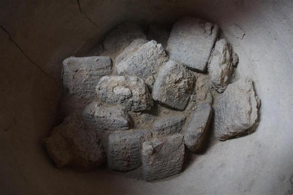 Sessanta tavolette furono poste in un recipiente di ceramica, probabilmente nascosto dopo la distruzione di un edificio adiacente.