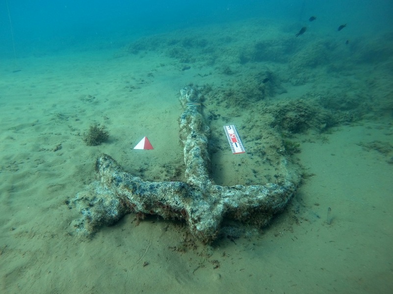 A poche decine di metri dal naufragio sono stati osservati anche due nuclei di ancore. Il primo è costituito da non meno di due ancore in ferro che da una prima lettura sono del tipo a “T” rovesciata e databili attorno al VII secolo. Il secondo nucleo è formato da quattro ancore litiche, verosimilmente preistoriche, una delle quali per quanto frammentaria sembrerebbe riconducibile alla tipologia con tre fori, ossia a quella che in origine erano provviste di due marre lignee.