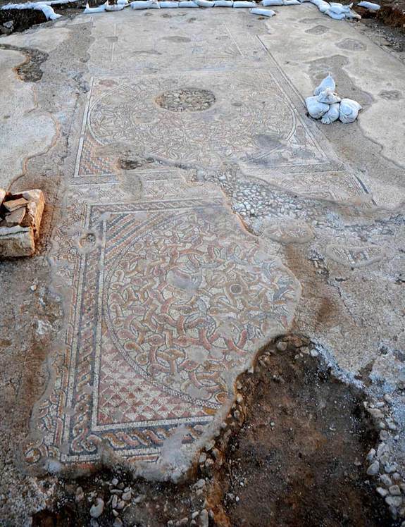 Il mosaico misurava circa 12 metri per 8,5. Diviso in tre parti con dei cerchi all’interno di ciascuno, era decorato con “disegni intrecciati”, ha detto l’archeologo Davida Eisenberg Degen. Ad ogni angolo vi erano anfore e altri disegni, come frutti, due pavoni, una colomba e una pernice.