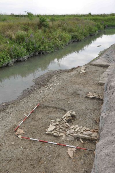 Un approfondimento stratigrafico di dimensioni circoscritte richiesto dalla Soprintendenza e accordato dal Consorzio di Bonifica, resosi necessario per documentare il contesto archeologico rinvenuto, ha messo in luce i resti di un edificio d’epoca romana i cui limiti esatti non sono ancora noti, ma del quale si sono individuati almeno due ambienti.