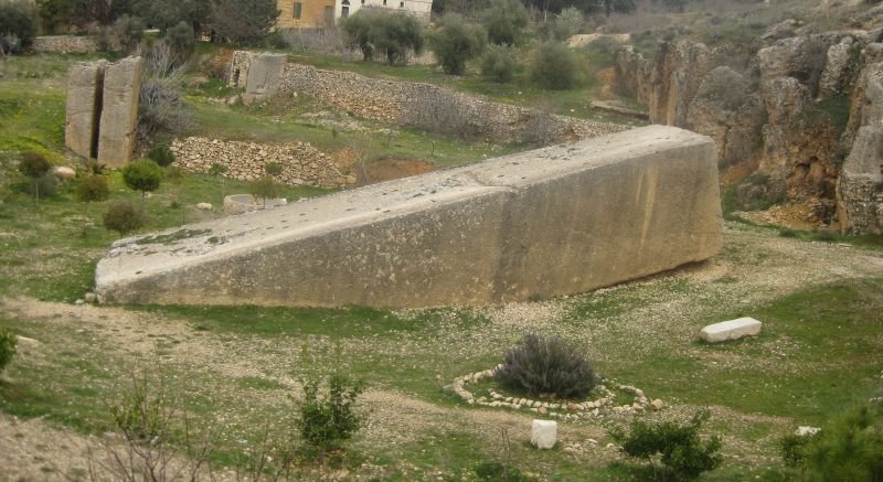 I più grandi “misteri” di Baalbek però riguardano senza ombra di dubbio tre impressionanti blocchi di pietra che furono scoperti nei pressi del sito a più riprese nel corso del tempo. Uno di questi è il famosissimo blocco di pietra lavorato e squadrato che si trova ancora parzialmente attaccato ad una cava di calcare, dove fu abbandonato a 1 km. di distanza dal tempio di Heliopolis, diverse migliaia di anni fa. Questo gigantesco blocco, la cui lunghezza è di 22 metri e il cui peso è all’incirca di 1000 tonnellate (ci sono stime molto differenti tra di esse che vanno dalle 1.000 alle 2.000 tonnellate, ma di sicuro si tratta di qualcosa di mostruosamente pesante) viene comunemente chiamato dagli estimatori occidentali “Monolito di Baalbek”, mentre per le popolazioni di lingua araba essa è “Hajjar el-Houble”, ovvero “La roccia della partoriente”, ed è sicuramente uno tra i più grandi blocchi di pietra che siano mai stati lavorati nella storia della Terra.