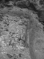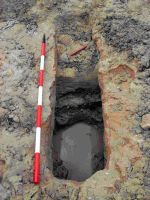 Iniziando la ricognizione delle strutture sommerse mediante scavo e rimozione dei detriti siamo venuti a contatto di un edificio certamente adibito alla produzione della preziosa tintura. Rimuovendo detriti e pietre di crollo sono comparse piccole vasche accuratamente rivestite di coccio pesto colme di sedimenti ancora da analizzare e quantità cospicue di tritumi di murex. La situazione di rinvenimento da l’impressione che il lavoro si sia interrotto improvvisamente quando ancora i molluschi erano in macerazione insieme a sostanze che ne agevolavano l’estrazione del colorante.