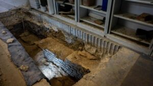 Precedenti indagini archeologiche avevano rivelato l’ubicazione approssimativa dell’antica basilica, perciò il team ha creato diverse piccole fosse di prova per vedere cosa si nascondesse sotto il pavimento di cemento.