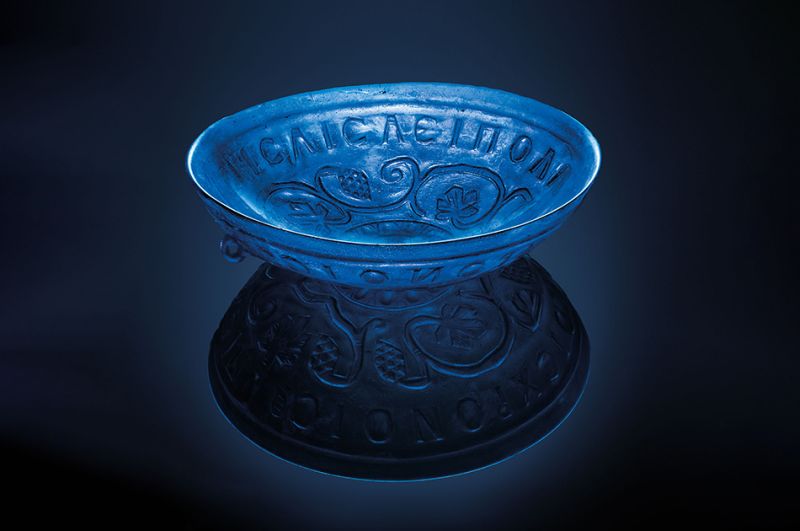 Il manufatto più stupefacente trovato sotto la via Gosposvetska è una coppa di vetro blu posta accanto alla salma della donna. Questo recipiente antico di 1700 anni è decorato esternamente con dei grappoli d’uva, foglie di vite e viticci. Un’iscrizione all’interno della ciotola in greco esorta il proprietario a “bere per vivere in eterno, per molti anni”.