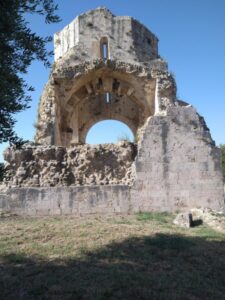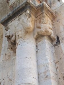 Il capocroce, la parte della chiesa che sta oltre il transetto, è tutto quello che resta di San Bruzio. Facendo ovvia eccezione per le pietre sparse a terra tutt’intorno. Sulle prime, quando ci si trova ancora sul sentiero, sembra che i ruderi dell’antica chiesa monastica anneghino tra gli ulivi. Poi, quando s’arriva di fronte alle rovine, ci si sente come sconvolti, sopraffatti, sovrastati dalla loro imponente gravità. Nel Settecento, gli abitanti della zona chiamavano San Bruzio il “tempio pagano”: non sapevano dare altra spiegazione a quei resti, e alle sculture che ancora ornano i suoi capitelli, un linguaggio figurativo del quale avevano perso memoria. Ma come noi oggi, anche loro avvertivano un senso d’inquietudine dinnanzi alla solenne maestà delle rovine di San Bruzio. Forse neppure s’azzardavano a metterci piede dentro, forse s’avvicinavano con un certo timore a quella strana costruzione ferita, monca, sfigurata, della quale sapevano poco meno di quel che sappiamo noi.