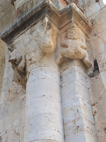 Lo stile dei capitelli, la finezza delle decorazioni, il rigore geometrico dei conci di travertino usati per la costruzione, oltre ai rigorosi rapporti dimensionali tra i varî elementi dell’edificio, hanno indotto e inducono a pensare che gli architetti attivi a San Bruzio fossero d’origine lombarda, forse maestri comacini, ch’ebbero il merito di costruire, sotto il borgo di Magliano, un edificio che non ha eguali. Un unicum, l’hanno definito gli studiosi Barbara Aterini e Alessandro Nocentini, somma di “varie esperienze architettoniche e che”, spiega Nocentini, “tra quelle dell’Abbazia di San Rabano o della pieve di Sovana risulta essere la più antica per coerenza morfologica del paramento murario, ed esprime una correttezza geometrico-statica possedendo una forma armoniosa e geometrie genialmente semplici”. E semplici sono anche le figure rimaste sui capitelli: fiori, motivi vegetali, tre elementi (una protome bovina, un leone, forse un angelo) che sembrerebbero i simboli di tre evangelisti, una bizzarra figura antropomorfa col corpo che assume una postura innaturale e la testa girata di centottanta gradi. Forse la personificazione d’un qualche peccato: il soggetto è raro, ma presente nelle chiese romaniche, anche a molta distanza da qua. Vuole una tradizione che a Bologna, guardando figure simili, Dante abbia tratto ispirazione per le punizioni inflitte ai dannati della sua Commedia. Anche i capitelli di San Bruzio lasciano supporre la presenza di maestri lombardi, che hanno portato in Toscana i repertorî tipici del Settentrione.