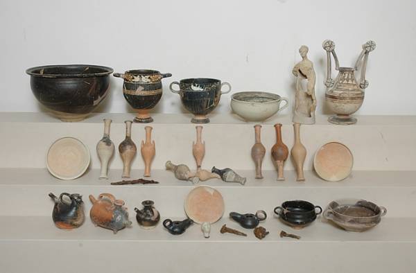 Alessio e il suo team hanno recuperato circa 30 oggetti funerari, che ora sono stati puliti e restaurati. Includevano vasi, piatti, lucerne, contenitori per unguenti, tre recipienti per allattare i bambini e due statuette di terraccotta raffiguranti soggetti femminili.
