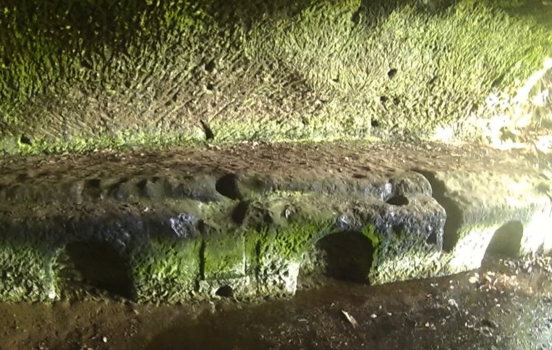 Nelle vicinanze si trovano diversi gruppi di tombe etrusche a camera, la zona limitrofa è conosciuta col nome di Grotte del Mereo, si può quindi supporre che la caverna dove si svolgevano i culti mitraici fosse in realtà una tomba riadattata ad uso sacro.