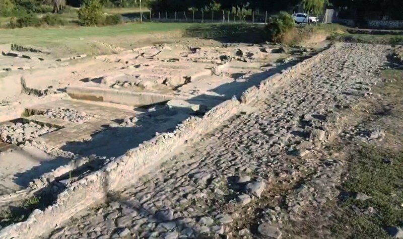 La strada era usata come un collettore di scarico e vista la sua direzione così conformata doveva servire anche per canalizzare l’acqua della fontana della sorgente del tempio B, che in alcune stagioni doveva essere abbondante; lo si nota per la presenza di un canale con alti bordi e fondo di grandi tegole che parte dalla sorgente situata dietro la grande vasca di depurazione dell’argilla e continua fino alla fontana, che perciò doveva essere presente anche al tempo dell’occupazione romana. La fontana secondo il professor Maggiani risulta compresa all’interno di un recinto rettangolare realizzato in blocchi di tufo che altri studiosi hanno presentato come la scalinata del tempio.