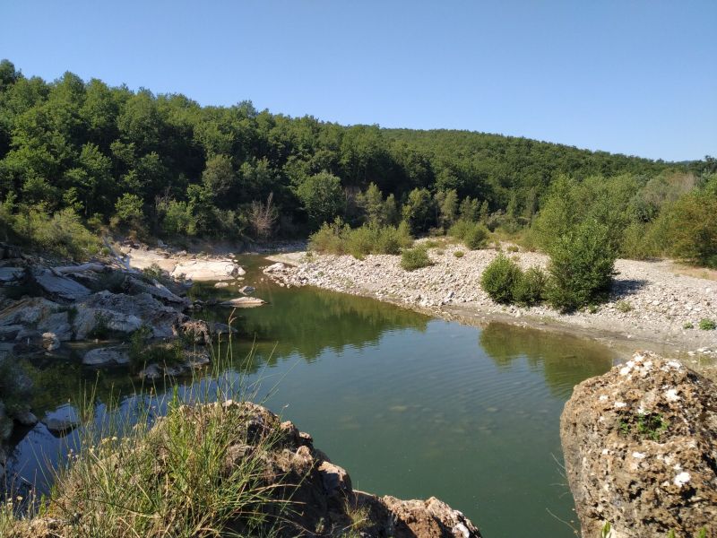 Il fiume è il Paglia, lì accanto un tempo passava la strada etrusca che portava a Chiusi, nelle vicinanze dell’antica via c’è un grande scoglio vulcanico che ricorda la testa di un guerriero con l’elmo, si trova quasi al centro del fiume e ne devia il corso naturale, in quel punto c’è un’insolita cavità profonda circa sei metri, sono presenti nell’area a confermarne la sacralità anche diverse sorgenti di acqua solfurea.