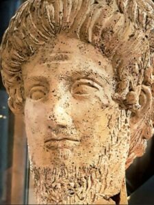 Lucio o Publio Settimio Geta, figlio dell’imperatore Settimio Severo e fratello di Caracalla. Fu co-imperatore per breve tempo prima di essere assassinato per ordine del fratello. L’autore del saggio lo definisce un “reietto di Roma” il cui busto fu trovato sotterrato nel sito di Campo della Fiera, un’area di lavoro per schiavi.