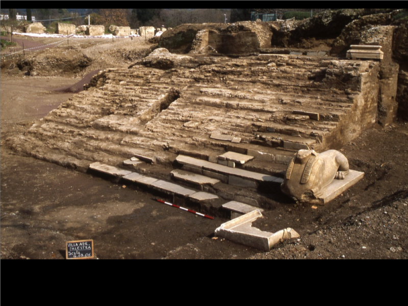 I recenti scavi compiuti nella c.d. Palestra di Villa Adriana a Tivoli hanno comportato una serie di rinvenimenti che, posti a confronto con le risultanze delle indagini del passato, hanno consentito di riconoscere inequivocabilmente la presenza di un tempio dedicato a Iside, la più importante divinità egizia, che non poteva non essere stata presa in considerazione dall’Imperatore per la sua rilevanza nella religiosità e nelle credenze filosofiche ed escatologiche dei culti orientali.