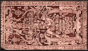 Era chiaramente raffigurata in bassorilievo una forma umana che, stando alla posizione in cui era ritratta, dava l’impressione che si trattasse del pilota di un mezzo, forse volante, avente a disposizione delle mani pulsanti, maniglie e leve; qualcuno ritenne che l’ammasso che si vedeva sotto di lui sarebbe potuto essere un motore, qualcun altro ha riconosciuto, nei ghirigori della figura, l’esistenza di un complesso che garantisse la respirazione e di un sistema che consentisse di manovrare il moto del mezzo: insomma, sembra di dover concludere che ci fu qualcuno che pensò addirittura che si trattasse del pilota della una navicella di un vascello galattico (un astronauta, in buon sostanza). A me, la sua posizione dà l’impressione che si tratti dell’addetto a una mitragliera o similare di carattere futuristico, mentre sono dell’avviso che non si tratti di nulla legato all’astronautica e che sia la descrizione artistica di qualcosa connesso alla religione dei Maya.