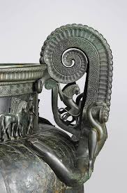 Il corpo del cratere, in bronzo martellato, si ribadisce, è formato dall’insieme di diversi pezzi in lamine dello spessore da 1 a 3 millimetri e tecnicamente è da ritenere perfettamente eseguito. Il fondo arrotondato del cratere poggia su un piede in bronzo fuso del peso di 20,2 chilogrammi e del diametro di 74 centimetri, di forma adeguata per riceverlo ed è ornato di fregi. Le anse, pure in bronzo fuso del peso di 47 chilogrammi ciascuna e alte 55 centimetri, sono a forma di volute, decorate da leoni rampanti e da “gorgoni”, mostri mitologici aventi serpenti per capelli e lo sguardo pietrificante.