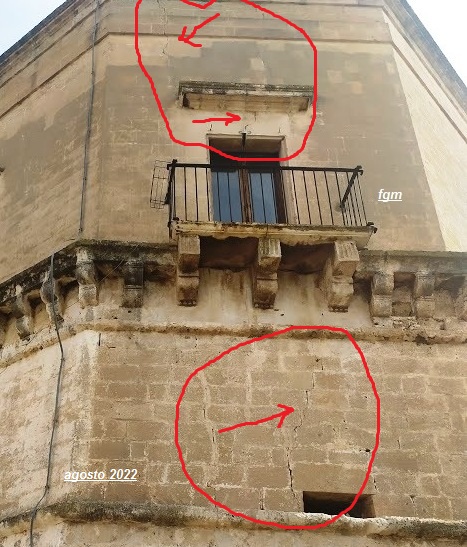 Facciamo altresì presente della presenza di alcune lesioni che interessano la torre ottagonale dove è ubicata la Biblioteca e che andrebbero monitorate.