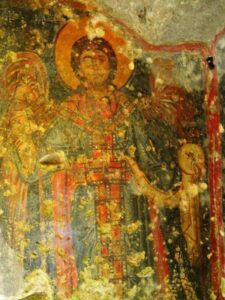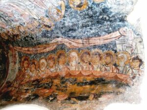 Le poche tracce ancora visibili degli affreschi ci permettono di vedere raffigurate” una ricca iconografia tra cui scene del Vecchio Testamento e un ciclo cristologico, tema piuttosto raro nell’ambito della decorazione pittorica delle chiese rupestri”.