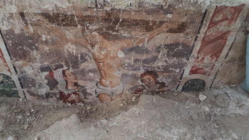 La città di Matera ed in particolare Porta Postergola continua a stupire. Dopo l’annuncio del 7 maggio scorso relativo al ritrovamento di un affresco di una crocifissione presumibilmente del 1500 che ha fatto subito confermare la presenza di un edificio sacro le operazioni di scavo che sono proseguite in questa settimana hanno confermato che l’edificio sacro è più grande di quanto si intravedeva inizialmente, le pareti intorno sono affrescate, la crocifissione non è l’unica pittura muraria presente ma ce ne sono altre. Di seguito l’annuncio del sindaco di Matera Domenico Bennardi dopo il nuovo sopralluogo effettuato nel pomeriggio e il video che illustra le nuove scoperte pubblicato dal Comune di Matera.