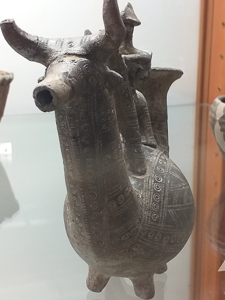 Vasi simili di forma taurina, seppur privi dell’ansa configurata, sono stati ritrovati oltre che a Bologna nell’Etruria Tirrenica (es Tarquinia).