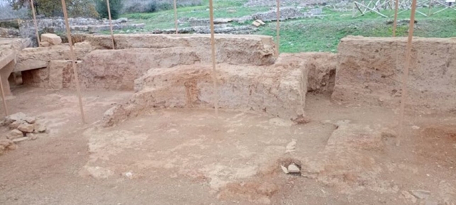 Relativamente al periodo arcaico sotto gli strati romani del foro è stata rinvenuta la cd. “casa a due vani”. Di forma rettangolare è divisa in due soli ambienti ed aveva forse con un piccolo portico ligneo sul davanti. I pavimenti sono in terra battuta, i muri portanti in pietra ed argilla ed i muri divisori in mattoni crudi. Il tetto era coperto da tegole e coppi.