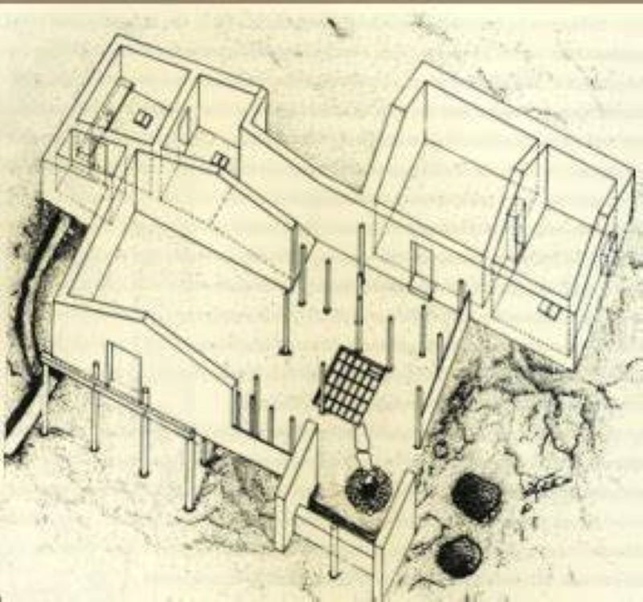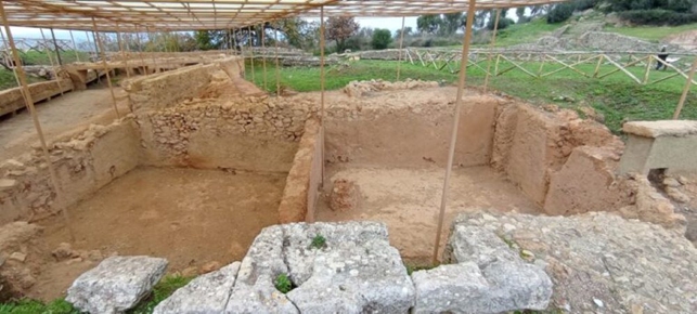 Sul versante settentrionale della collina nord sono stati portati alla luce i resti di un edificio di circa 300 mq. con pareti in pietra ed argilla e tetti in cotto. La cd. “casa dell’impluvium”, con planimetria a forma quadrangolare, fu realizzata nel VI secolo a.C. su una precedente abitazione a due vani del VII secolo a.C. L’ingresso era a nord-ovest tramite un portico che immetteva in un grande vano centrale dal quale si accedeva al resto dell’abitazione. Sono state identificate la stanza da pranzo (ceramica da banchetto), la cucina (ceramica da cucina, focolare al centro, pietra da mola e dispensa), la stanza da letto (focolare e banchina lungo la parete di fondo), un vasto ambiente che poteva essere lo studio (tablinum) ed altre stanze di servizio per i padroni e gli schiavi. Il settore nord-occidentale si articolava attorno ad una vasca per la raccolta dell’acqua piovana (impluvium) – da cui il nome dell’edificio – proveniente dalle falde del tetto che convergevano verso un’apertura rettangolare posta sopra la vasca e quindi in una cisterna.