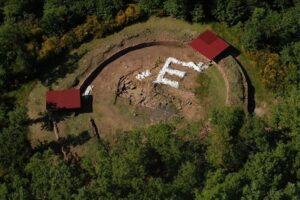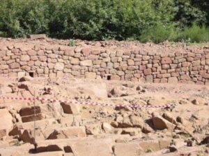 La struttura si componeva di tre anelli difensivi: una muraglia circolare in pietra costruita sulla sommità del colle era circondata da due cinte fortificate ellittiche di fango, pietrisco e legname. Il livello più basso della struttura nella parte settentrionale si raccordava con l’anello intermedio.