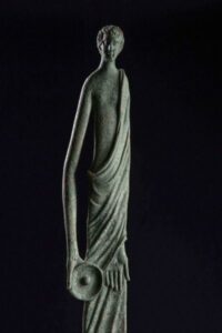 Secondo un’interpretazione l’allungamento rispondeva al desiderio del donante di evidenziare la propria offerta al cospetto della divinità e degli altri frequentatori del santuario. E’ stato anche proposto che l’altezza ed il peso di tali ex voto fossero parametrati rispettivamente a precisi canoni estetici ed alla monetazione del tempo.