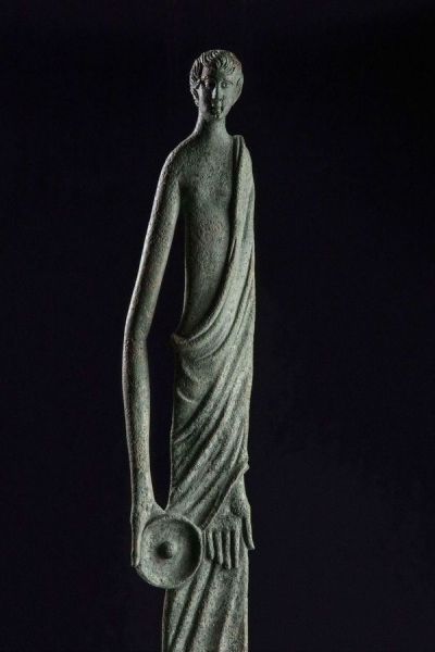Il bronzetto allungato fa parte di un gruppo di ex voto (una ventina) del periodo ellenistico, rinvenuti nell’Etruria centro – settentrionale, nel Lazio e nelle Marche, ritenuti di produzione etrusca. Le statuette della serie sono accomunate da una struttura corporea longilinea e sproporzionata, talvolta schematica e dalla testa lavorata a tutto tondo. Si tratta di oggetti piuttosto eterogenei: l’altezza è compresa tra i 20 e gli 80 cm e le figure rappresentano variamente divinità, offerenti, portatori d’acqua, aruspici ed infanti (come la celebre Ombra della sera di Volterra).