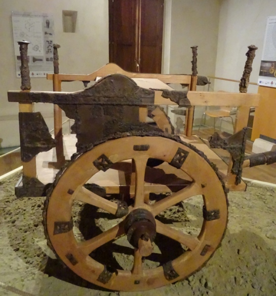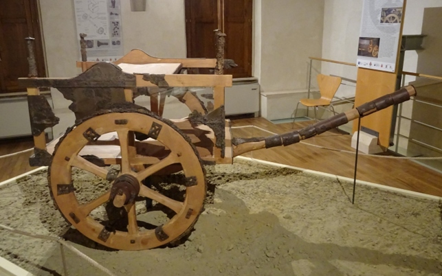 Gli elementi del carro in particolare sono stati oggetto di un approfondito studio che ha poi portato al restauro ed all’ipotesi ricostruttiva del reperto che è stato integrato con una struttura in legno.