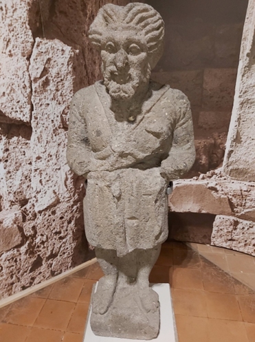 Talvolta è munito anche di spada. In qualche caso tiene un rotolo.