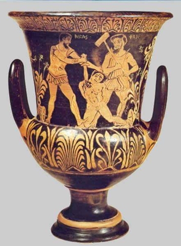 Di seguito immagini di Charun: urna volterrana, tomba François di Vulci, statua da Caere, tomba degli Anina di Tarquinia, cratere vulcente.
