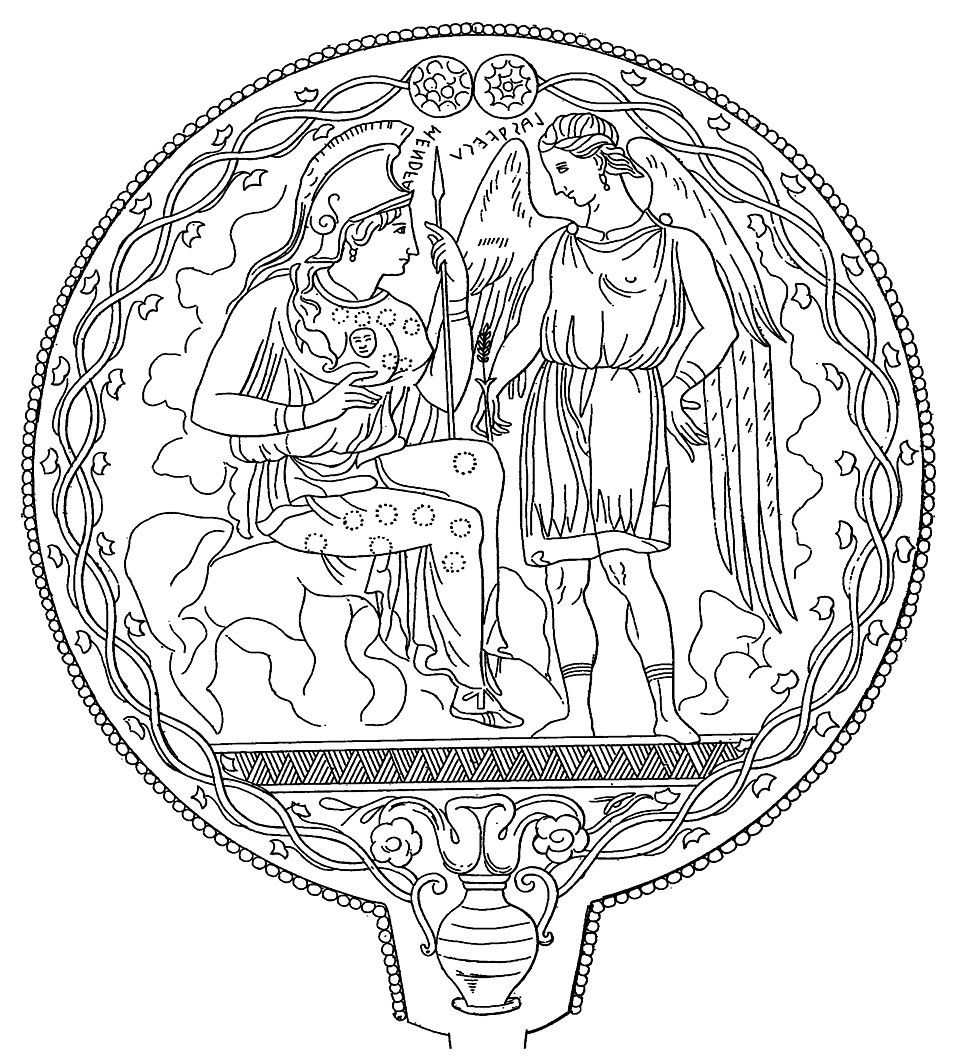Di seguito immagine dello specchio da Blera con rappresentazione della lasa vecu, conservato presso il Museo Nazionale Etrusco di Villa Giulia.