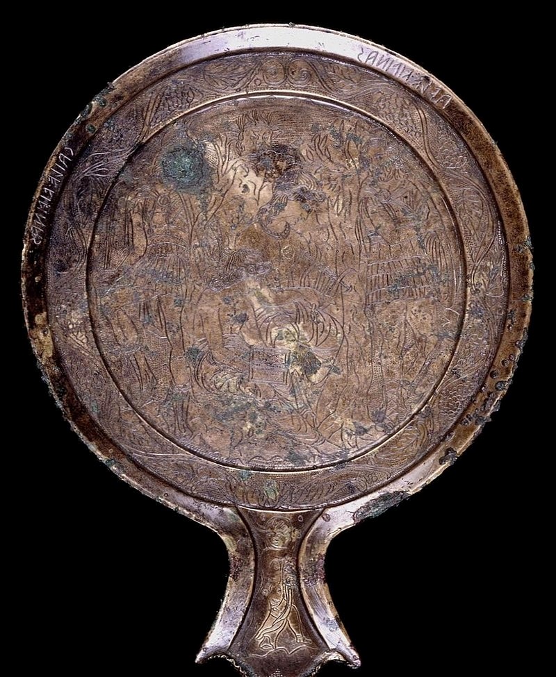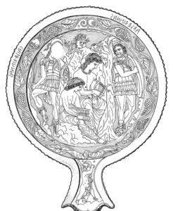 Di seguito immagini dello specchio di Bolsena e dell’urna chiusina da Sarteano.