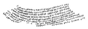 Il testo dell’iscrizione, la cui interpretazione da parte degli studiosi è piuttosto controversa, si compone di circa 60 parole (originariamente dipinte in rosso) ed è distribuito su 9 righe scritte da destra verso sinistra.