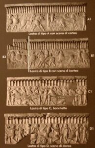 Le lastre C e D (stile, particolari) furono probabilmente realizzate dallo stesso artista e le relative matrici sono attestate anche a Tuscania e Castel d’Asso.