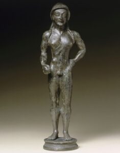 Nel maggio 1838 una pastorella trovò sulle sponde del bacino lacustre un‘oggetto metallico che risultò essere un bronzetto di circa 20 cm raffigurante una figura maschile con pelle di leone. Fu costituita una società da parte dei proprietari dei fondi locali per compiere ricerche sul posto.