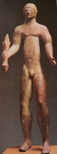 Di seguito immagini di bronzetto di Tinia intento a scagliare un fulmine databile al VI – V secolo a.C presso il Cleveland Museum, di statuetta in bronzo di Tinia con un fulmine da Firenzuola del V secolo a.C. al Museo dell’Accademia Etrusca di Cortona e della iscrizione bilingue di Pesaro.