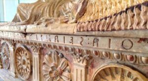 All’interno del sarcofago vi era anche una moneta romana piuttosto consunta (asse con testa di Giano al dritto e prua di nave al rovescio) forse per il pagamento del traghettatore agli inferi.