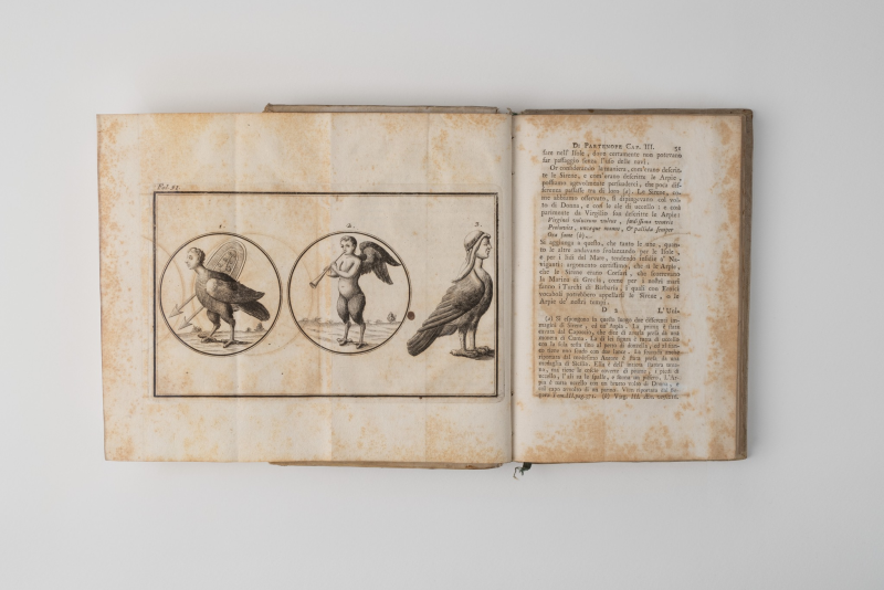 Il percorso espositivo si propone dunque, in primo luogo, di fare chiarezza sulla forma delle Sirene e sulla progressiva, straordinaria metamorfosi, che questi esseri attraversano nel corso dei secoli: da uccelli con testa umana a donne con zampe di uccello e poi, nell’Alto Medioevo, a donne con coda di pesce. Prendendo spunto dall’episodio archetipico dell’incontro con Odisseo, narrato da Omero, si illustrano così le vicende mitiche di cui le Sirene sono protagoniste, e la loro trasformazione funzionale da pericolose ammaliatrici a benevole accompagnatrici, génies des passes (=geni dei passaggi).