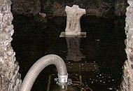 L’IPOGEO ALLAGATO – «Quando il vano ipogeo si riempie eccessivamente a causa dell’infiltrazione di acqua piovana, siamo costretti a portarla via manualmente con i secchi» commenta ancora Illiano. «Le pompe idrovore della locale associazione di protezione civile “Falco” danno una mano ma il loro intervento può avvenire solo due volte all’anno; per il resto l’ipogeo, che tra l’altro contiene un prezioso pavimento a mosaico, rimane costantemente sotto circa mezzo metro d’acqua».