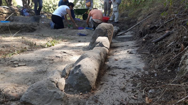 “Seguendo questa indicazione, lasciata forse per i posteri, stiamo riportando in luce un tratto dell’antica strada che costeggia le terme – aggiunge – Sarebbe necessaria una campagna di scavi più articolata per rimuovere il terrapieno, piante e alberi e riscoprire l’intero basolato”.