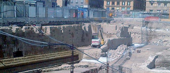 Fa veramente male. Passare davanti al cantiere della Linea 1 del metrò di piazza Municipio e vedere una ruspa che butta giù pezzi di muro. Anonimo, forse, ma per alcuni studiosi databili al viceregno. Di tufo giallo e allo stesso livello degli antichi bastioni del Maschio Angioino risalenti agli aragonesi, sepolti e riportati alla luce con gli scavi per realizzare il progetto di Alvaro Siza. Testimonianze di storia di una città e del suo cuore pulsante attraverso i secoli, buttati giù. Possibile? La Soprintendenza, spiegano i bene informati, può solo registrare, catalogare, ma in nessun modo opporsi all’avanzamento dei lavori di un progetto di grande importanza pubblica. Soprattutto se, come spiega la stessa Soprintendenza, quelle mura «non hanno alcun valore. Sono tardo ottocentesche. Vasche di riempimento. Devono andare giù se si vuole terminare l’opera».