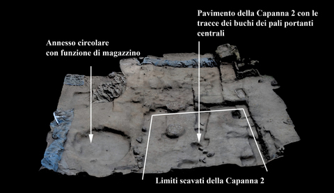 I nuovi ritrovamenti sono rappresentati da tutta una serie di grossi contenitori e di vasi che stanno venendo alla luce al di sotto del crollo di una struttura capannicola, parte di un villaggio più ampio, molto imponente che occupava la punta d’Alaca. Tra questi è stato ritrovato uno stupendo, piccolo ma per noi archeologi davvero importante, frammento di brocca micenea. Il reperto dalle dimensioni di pochi centimetri è sufficientemente grande per determinare una conferma di datazione del sito e in particolare del crollo di questa capanna al 1.500 a.C. . Un frammento molto bello, con fasce di pittura rossastra e giallastra che assieme a tutta la ceramica micenea ritrovata dal 1977 in poi testimonia l’incontro sull’isola di Vivara di naviganti provenienti dalla Grecia micenea: da Micene, da Pilo, da Tirinto, dall’isola di Chitera.
