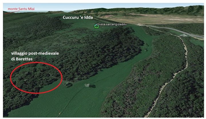 Nella foto aerea, vi sono indicati alcuni toponimi. S’Arcu Angioleddu (che può che essere S’Arcangioleddu, ossia Arcangelo Bambino).