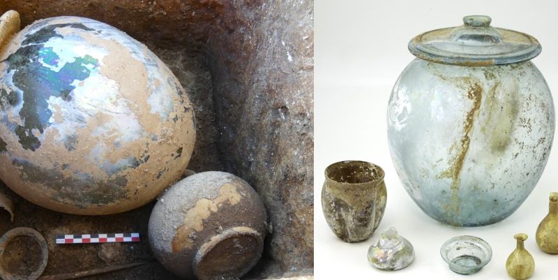 NIMES (F). Scavi portano alla luce copiosi e preziosi corredi romani di vetro e terracotta, ed una scatola-specchio per il trucco.