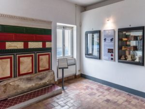 Perfettamente conservati anche gli appositi coperchi in legno compresa. La storia dell’edificio che ospita il Museo continua dal piano seminterrato al pian terreno con la visita della ex Sala Comunale, decorata da affreschi ottocenteschi ben conservati che rispecchiano le influenze della cultura figurativa di tendenza classicheggiante negli ambienti provinciali.