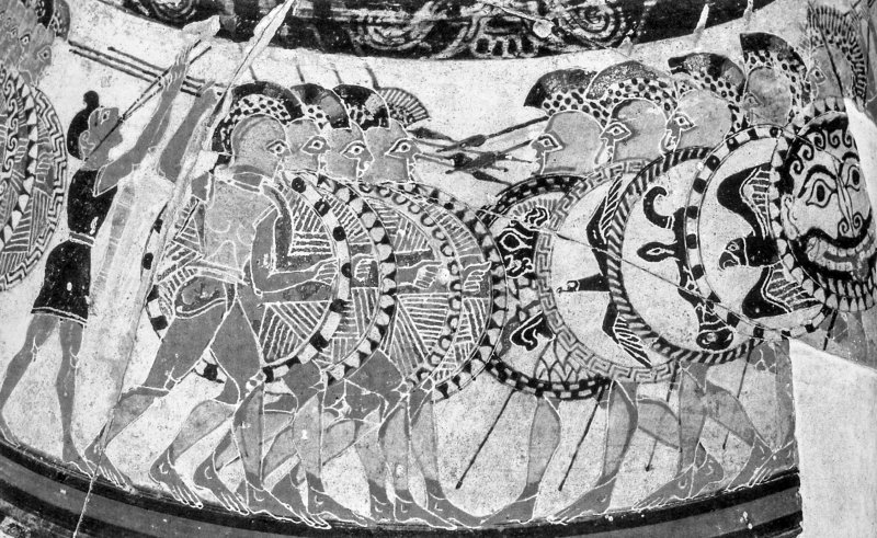 Olpe Chigi VII sec. a.C. particolare con combattimento oplitico