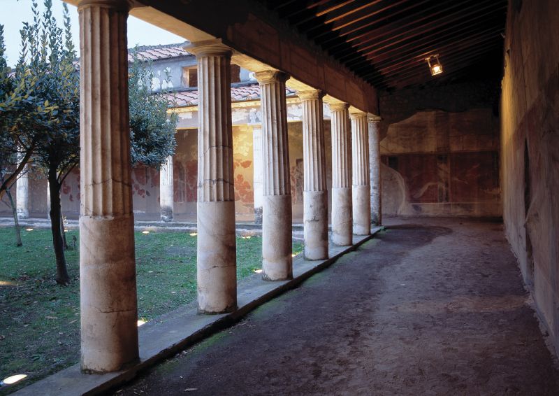La Villa di Poppea a Oplontis aveva il suo spettacolare affaccio sul mare, con panoramici ambienti di soggiorno e terrazzi che si sviluppavano per altri livelli al di sotto di quello dell’atrio principale già alla luce.