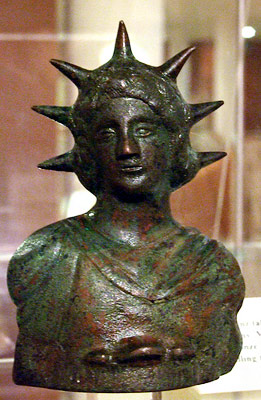 Il culto del Sole Invitto, cioè non vinto, si diffuse a Roma per la prima volta con l’imperatore Eliogabalo (sebbene vi siano emissioni monetali antecedenti del Sole, almeno dell’epoca di Caracalla), che tentò prematuramente di imporre il culto di Elagabalus Sol Invictus, il Dio-Bolide solare della sua città natia, Emesa, in Siria. Eliogabalo fece costruire un tempio dedicato alla nuova divinità sul Palatino. Con la morte violenta dell’imperatore nel 222 questo culto cessò di essere coltivato a Roma, anche se molti imperatori continuarono ad essere ritratti sulle monete con l’iconografia della corona radiata solare per quasi un secolo.