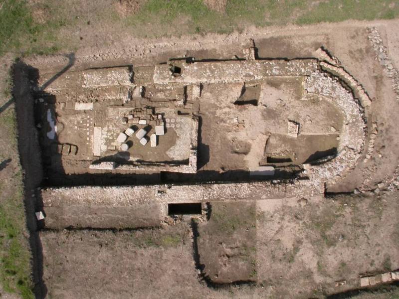 Nel 1876 i primi scavi archeologici restituirono resti di strutture murarie in tufo e furono recuperate pregevoli terrecotte architettoniche oggi al Pergamon Museum di Berlino.