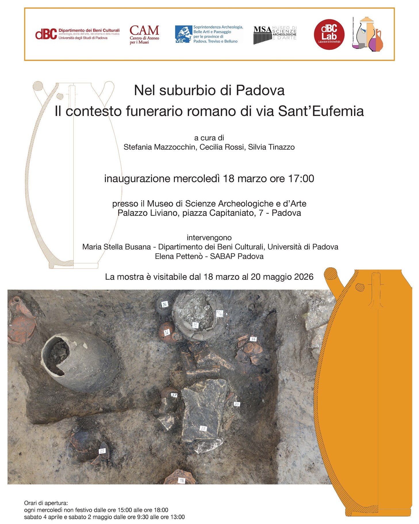 Mostra, presso il Museo di Scienze Archeologiche ed Arte di Palazzo Liviano, Piazza Capitaniato 7, Padova, a cura di Stefania Mazzocchin, Cecilia Rossi, Silvia Tinazzo e frutto di collaborazione tra il Dipartimento dei Beni Culturali, la Soprintendenza Archeologia, Belle Arti e Paesaggio (SABAP) di Padova e il Centro Ateneo per i Musei dell’Università di Padova.